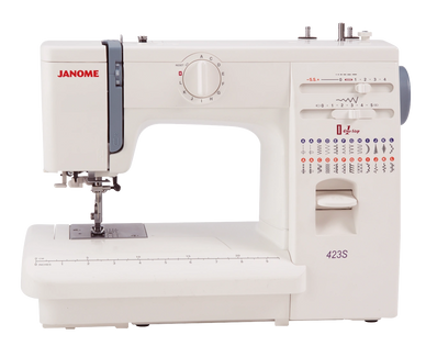 An upgraded version of the J3-18 with 16 utility stitches and 4 decorative stitches. It also features an automatic 1-step buttonhole. This is a good all round machine.