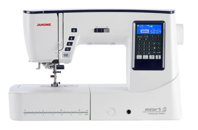 Designed for every type of sewing, general sewing projects, home décor, fashion, patchwork & quilting; the Atelier 5 Anniversary Edition has 210mm (8.2”) wide arm space to the right of the needle with a height of 120mm (4.7”), giving you plenty of space for those larger projects. With a great range of 170 stitches including a choice of 10 buttonhole styles plus 4 alphabets. Flip up the machine’s top cover to view the huge variety of 9mm wide stitch choices available. The stitch quality is excellent even at speeds of 1,000 stitches per minute! Pivot on corners with the needle up/down feature, use the maximum sewing speed for precision work and to help you gain confidence. Thread the needle with built-in threader, trim off threads with the built-in automatic thread cutter scissors button … plus there is an extra wide table for those larger projects. Tackle almost any sewing challenge!